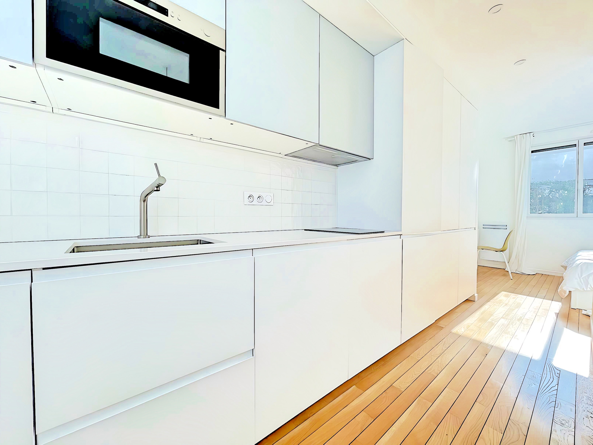 Paris (75013)METRO OLYMPIADES/IMPASSE BOURGOIN - Dans une jolie impasse bordée de maisons de villes et proche des commerces, nous vous proposons ce beau studio meublé de 23m² en parfait état. Pièce principale de 20m² avec cuisine ouverte et coin nuit, une salle d'eau avec WC. Lumineux et très calme.