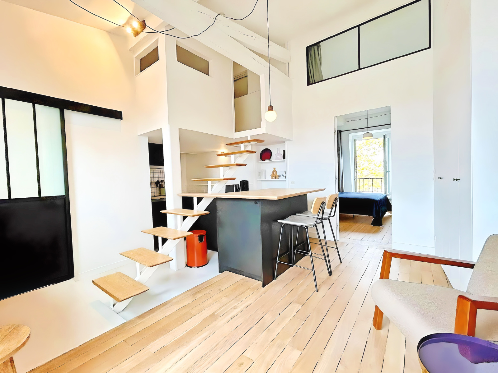 Boulogne-Billancourt (92100)BOULOGNE BILLANCOURT/METRO MARCEL SEMBAT - Proche de tous les commerces, au 6ème étage d'un immeuble ancien, superbe 2 pièces de 39m² au sol (33m² habitables) en parfait état et idéalement aménagé. Séjour avec cuisine ouverte de 20m², chambre de 10,5m², salle d'eau/WC, bureau en mezzanine. Beaucoup de charme avec parquet, moulures et cheminée. Ameublement d'excellente qualité. A voir très vite !