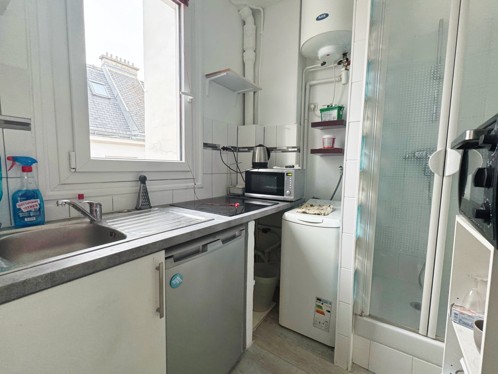 Paris (75016)RUE VICTORIEN SARDOU - Au dos du Parc Sainte Périne, proche du métro Chardon Lagache et des quais de Seine, au 7ème et dernier étage sans ascenseur dans un bel immeuble en pierres de taille avec gardienne, beau studio de 17m² en très bon état et parfaitement agencé. Pièce principale de 10m², coin cuisine, douche et WC. Clair et très calme. Parfait pour étudiant ou 1er achat.