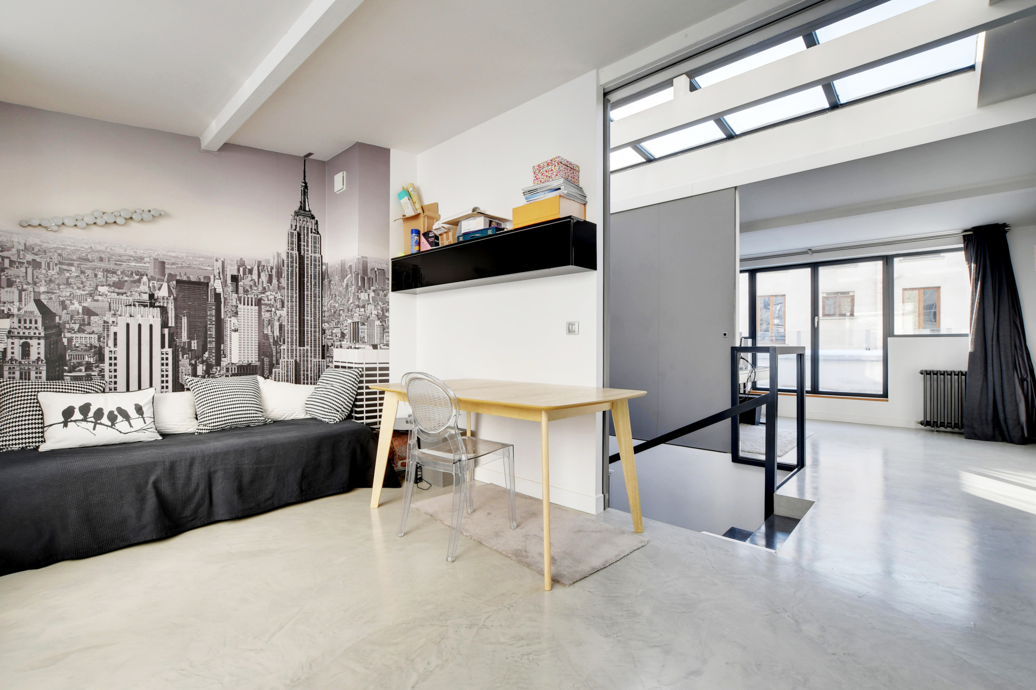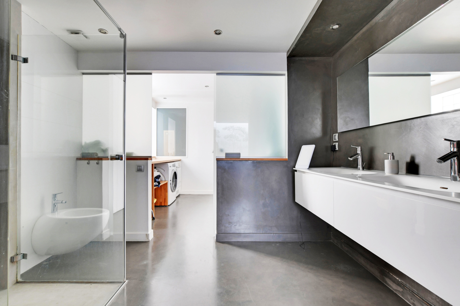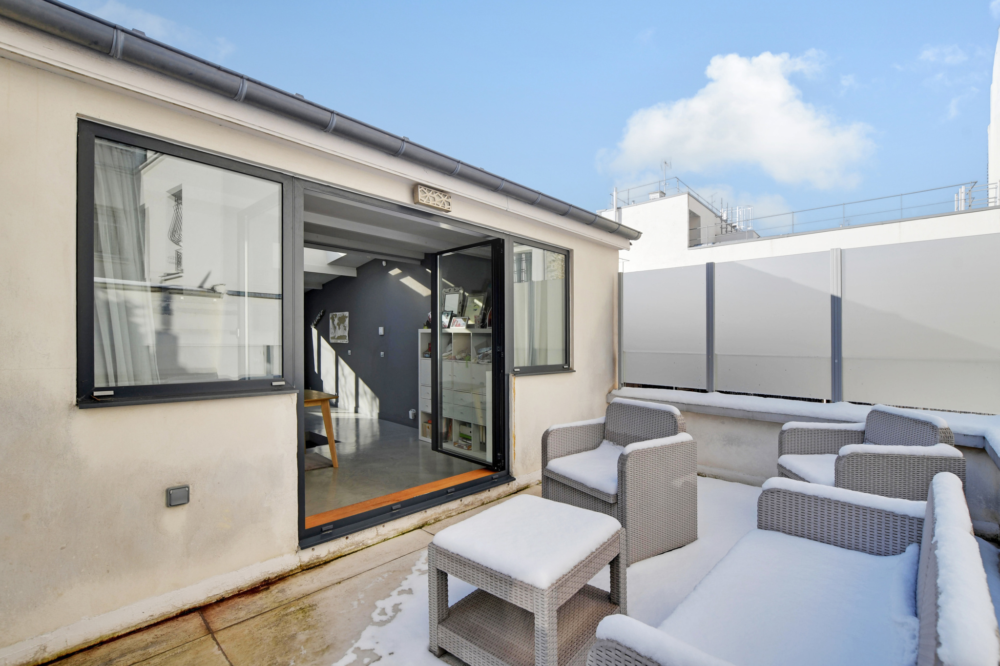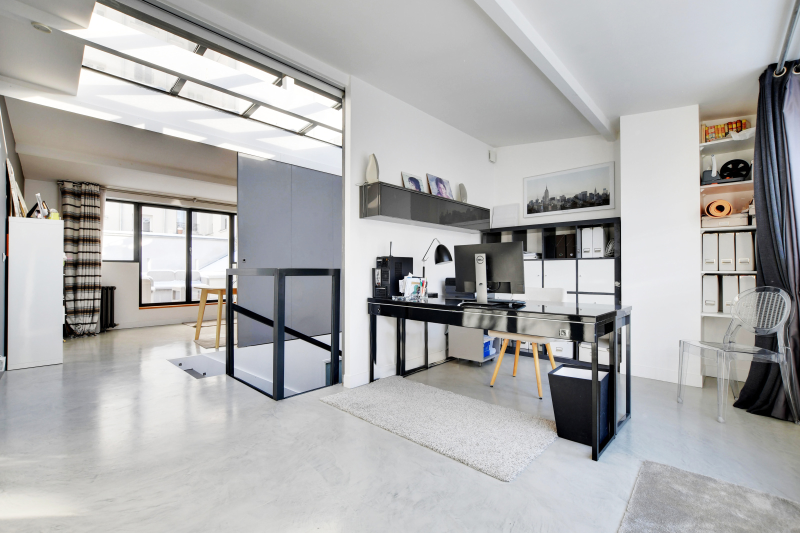 - 4 à 5 chambres, dont trois suites de 25 m² avec dressing et salle d’eau.Un niveau bureau (chambre supplementaire(s) sous verrière zénithale, ouvrant sur deux terrasses opposées de 11 m² chacune.